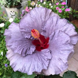 ハイビスカス・デニムブルー 猛暑を乗り越えて 1ヶ月ぶりに咲いてくれました✨😊 大きなツボミがあと3個あったから 明日も咲いてくれるかなー(灬ºωº灬)♡