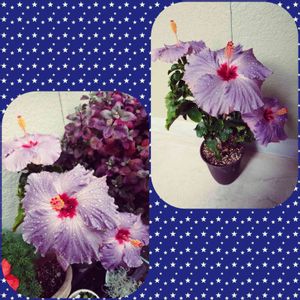 1ヶ月ぶりにハイビスカスが咲きました✨ デニムブルー、ミセスユミ一緒に咲いた(灬ºωº灬)♡
