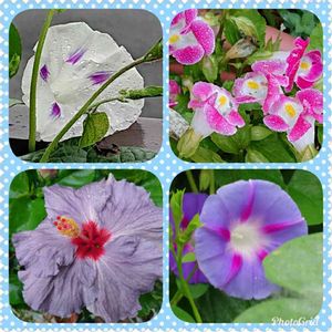 トレニア、朝顔、ハイビスカス デニムブルー 昨日のデニムブルーの花が萎んだかわりに新しい花が咲いてたよ😃💕 良くあるハイビスカスの花を髪に飾るとかあるけど10センチ以上ある花の髪飾りも違和感あるわ😁💕