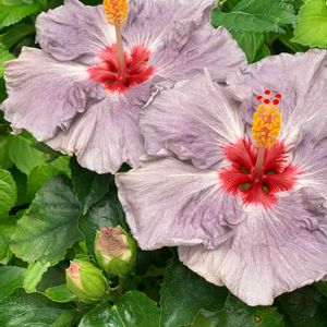 こんにちは(*^^*) こちら意外とお天気もってます☀️ 今日は2つ咲きました🌺 #ハイビスカスデニムブルー
