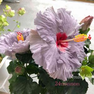 今日は少し過ごし易いですね。 デニムブルーに惹かれて購入したハイビスカス🌺 蕾を見てブルーじゃなかったの? と心配になっていたけれど、咲いたらちゃんと大輪のデニムブルーのお花が咲きました💕