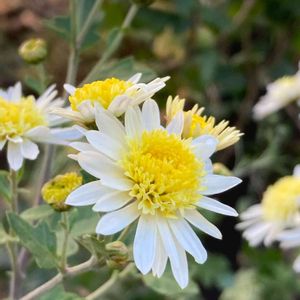 下の公園で ヒョロヒョロで背高のっぽの小菊が 沢山咲いていました🌼🤍 年々増え、見応えが出て来ました🎵 花友さんから戴いた カンナの株分けしたのを植え 麦コスモスの種を蒔きました🎶