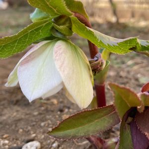 下の公園で 昨年植えたクリスマスローズが やっと咲き始めました💕 地面スレスレにうつむいているので お顔が見えません😅