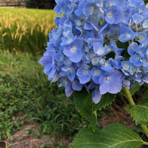 紫陽花とまっしぐらの稲 綺麗に並んでおります。
