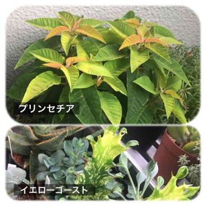 こんにちは😃 眠い💤💤😴 ユーフォルビア属 ⭐️プリンセチア(254) Euphorbia pulchevrima❗️ 本日のお花、ポインセチアが無いので、プリンセチアちゃんです〜❗️😅 まだまだ 紅葉は先です、クリスマスまでには🤶お願いしますね〜❗️🥰 オロスタキス属 ⭐️爪蓮華(193) Orostachys japonica❗️ 真ん中に 花芽が❗️🥰 ⭐️イモムシさん、お食事中❗️😅