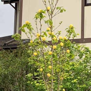 アイコンにしている黄木蓮の花です🌼 爽やかな香りがしますよ🎶 GS始めてから教わり、毎年剪定してますが、一気にやると暴れるので😆花後と休眠期の2回に分けて剪定しています☺️ 枝が垂れ下がってくるのは剪定すべきなようですね。 そして、ブッツリ切った後は枝が立ち上がっています。 左半分は花芽のない枝を✂️したのですが、右側は中断してて、三つ葉あけびの蔓が絡んでいます😆 手が回らないので、遊びながら…さて、この蔓はどうしましょう🤔 最近は、綺麗だね🌼〜と言われるより💦💦💦 「切っちゃった方が良いんじゃない」と言われたり、思われているようだわ〜😂😂😂