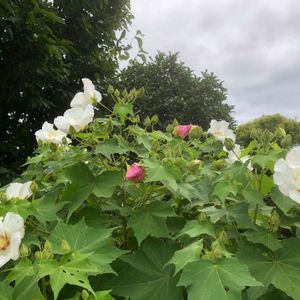 今日から9月〜今月もよろしくお願いしまーす🤙 咲き始めから4日 酔芙蓉の花が賑やかになりまりました〜🤍🤍🤍🤍🤍💗💗 💗💗は昨日の花が萎んだものです🎶 曇りの日は中々色づいてくれませんね! 今朝も雨が降っててくれる事を願っていたのですが、一向に降る気配は無く☂️仕方なく水遣りしました😂 木に虫が付かぬよう、庭一杯〜小さな畑もやっているとあっという間に時間が過ぎます😌
