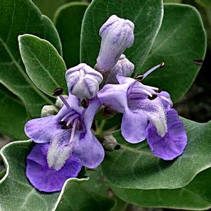 昨年葉と果実を見ていたので、花を見に行ってきました♪ ハマゴウ(浜栲) シソ科 ハマゴウ属 落葉小低木 本州、四国、九州、沖縄に分布。 海岸の砂浜に生育。 ハッカの良い香りがする。 幹は灰褐色、砂中を這って広がる。 枝には4稜がある。 葉の両面に微毛が密生し、葉裏は灰白色。 円錐花序に唇形花が多数つく。 花冠は淡青紫色、長さ1.2〜1.6cm、花冠の先は上唇は2裂し、下唇は3裂し、中央裂片は大きい。 雄しべ4個。柱頭は2又する。 果実は球形で、秋に黒く熟す。 花期7〜10月 7月21日撮影 大洗海岸