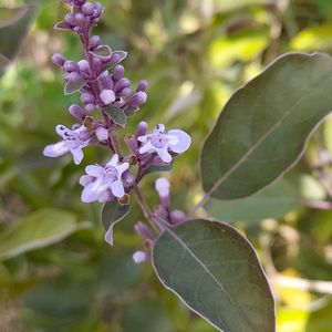 ハマゴウ(浜栲) *シソ科ハマゴウ属 花期は7〜9月 本州〜九州の海岸の砂浜に群生する常緑小低木! 8/8の🏷️葉っぱの発表会で投稿していたハマゴウに遂に花が咲きました❣️ 今朝の様子です♪ まだ小さな株で、か弱そうですが花を付けた姿には感動がありました‼️ 2011年東日本大震災の津波の後に蒲生干潟でハマゴウが発見されたのは2年後の2013年。 その後 現在の場所に移植.保護されて、おそらく数年前から花を付け始めたようです。 蒲生干潟は津波で、その姿を大きく変えて干潟が戻るのか心配されていましたが、完全とまでは言えませんが徐々に回復しつつあります❗️ 以前新潟県で見事に大きな群落を見ていましたが、この数輪の開花は愛おしい姿でした❣️ 8月18日撮影