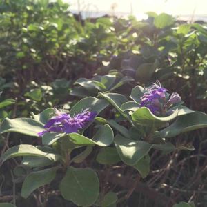 海へと続く地下道に、ハマゴウの花が! 冬場は茎が枯れた感じに見えたけど、ちゃんと元気なんだなー。