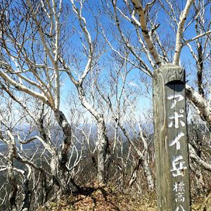 ダケカンバの林におおわれたアポイ岳の山頂です。登る途中から南には太平洋の海、北には雪残る日高山脈、遠くに襟裳岬が見えていました。5合目から森林限界となり、ゴツゴツとしたかんらん岩の露地にハイマツ帯が広がります。厳しい環境の中で生き抜く頂上のダケカンバの姿に感動しました。〈2022.4.30〉