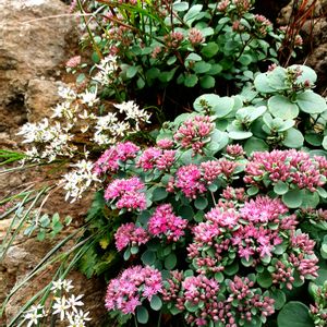 カラフトミセバヤ 多肉植物 ボケていますが奥はダイモンジソウです