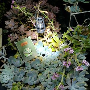 昼間とは違った顔を見せる ぷくぷく夜多肉?と 小さくて 可愛いピンクは クラッスラ属の ツクバネの花 日常から 逃避して ランプの 明かりの 下 ちびちびとやりながら 夜多肉たちと 語り明かして 東の空が うっすらと 明るく … なんて ならないうちに さっさと 家に入って … おやすみなさい また明日ね