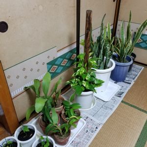 台風対策のため避難した植物達。室内の空気が一気に清浄化されます。
