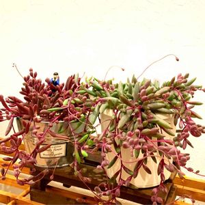 🏷ネックレスの日♪ 参加させていただきます(╹◡╹)♡ 寒いので部屋に持って入って撮影📸 ルビーネックレスさんはもりもり増えてます✨ 右の鉢のルビネを✂️し、増やしたのが左の鉢! 置き場所の違いで、紅葉具合が全然違う😶 左の鉢はお日様ガンガン当たる場所だからしっかりルビー色😃 右のはミドリン多め😅 元気だからいっか👍