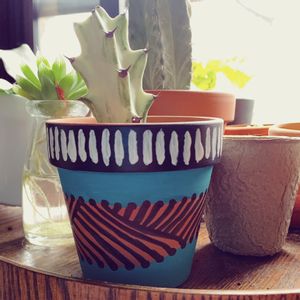 なんか、周りがリメ鉢されてるのを見て自分もしたくなったので色塗ってみました。 ダイソーのアクリル絵の具、楽しいです🤭✨