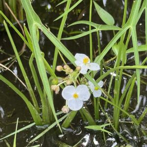 今日のお花 オモダカ(オモダカ科) 8/6 中国原産 平安時代に渡来 葉っぱが人面のように見え葉っぱの面に 葉脈が高く隆起しているところから「面高」 葉はやじりのような形 ④田んぼの端っこに可愛い花が咲いていました ⑤ ↘️私は実家の紋 花面高を使っています 図案化された面高と比べると 実際は葉がかなり細身ですねー⁉️