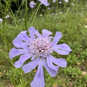 マツムシソウ(マツムシソウ科) 秋を代表するようなお花❣️ 8月に入るとチラチラと咲き出し③ 11月の寒い風が吹く頃まで見られます この山の公園は遊具もなく(かなり前に撤去)来る人もほとんどないような所です なのでマツムシソウやウメバチソウなどが伸び伸びと育っています そんないつも誰もいない公園 先代犬🐕の時から散歩に行っては季節の移ろいを楽しんでいます (熊🐻には注意しながら⚠️) 9/19 9月の最終日 ⑤ 🏷️オケツの日に参加します
