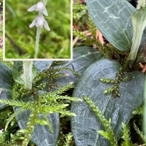 午後散歩🚶♂️ ミヤマウズラ② 先ほど花を投稿しましたが これがこの花の葉っぱです🌿✌️ 苔むしたフワフワの中にポツンと咲いていました