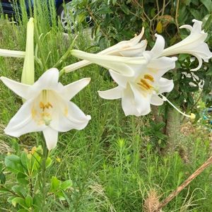 暑くて散歩をためらっているうちに、あちこちで百合の花が開花していました。 薄紅の線が入っていたタカサゴユリはいつの間にか姿が消え、このシンテッポウユリが主流になってきました。 この暑さにも負けず、元気に咲いています‼️