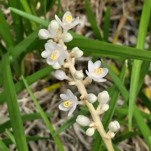 まわりにお花がないのでちょっと目立っているヤブラン。 いつもならスルーしてしまうんだけど、頑張ってアップで撮ってみました‼️ あら、意外と可愛いお花ですね❣️