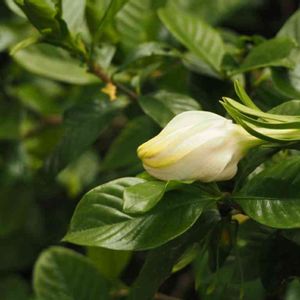 🌿🤍🤍🤍🤍🌿 クチナシ 🌿🤍🤍🤍🌿 「今日のお花」 🌿🤍 6月の雨上がりの日 🤍🌿 まだ涼しい日に 誘われて・・・ お散歩コースで〜出合う!!! 仄かな?甘い優しい香りに 誘われて・・観ると〜 緑色の葉の間より薫る花 🌿🤍 クチナシの花が〜 🤍🌿 有りました🤍🌿 🤍🌿 🌿🤍