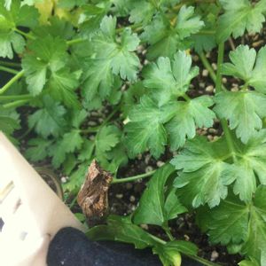 キアゲハが羽化して抜け殻になった蛹😊ベジトラグにはさんであった洗濯バサミにつかまって無事春を迎えました✨この子を守るように雪の中でも枯れることのなかったイタリアンパセリ🍀💕このキアゲハはほぼ100%このイタリアンパセリを食して育った🥰なんか愛を感じます