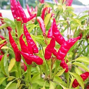 おはようございます☔ 今日の🌼(実) 初めて実っている姿を見たときの📷picてす👍 真っ赤な🌶️…たぶん辛いけど美味しそう〜😋