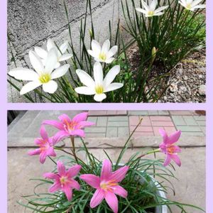 おはようございます☁️ ゼフィランサス。 上が8月27日散歩中に駐車場で咲いていたタマスダレ。 下が9月8日我が家のサフランモドキ。 以前は下のサフランモドキをゼフィランサスだと思っていましたが、総称でタマスダレとサフランモドキはその種類だと最近知りました。