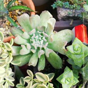 おはようございます⛅️ たくさんの多肉が元気がなくなったり小さくなったりしている中で、なんだか元気に成長している「福娘」🌱😆 おまかせセットに入って届いた時には、そんなに魅力を感じなかったのに、娘さんらしく色白美人になりました✨💖