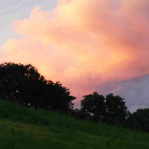 No 816 おはようございます。 昨日の北東の空です。 夕陽が雲に反射していつもの夕焼けの反対側。 こんもりとした草原と、夕焼け空が撮れました✨ 電線が無かったらなぁ💦