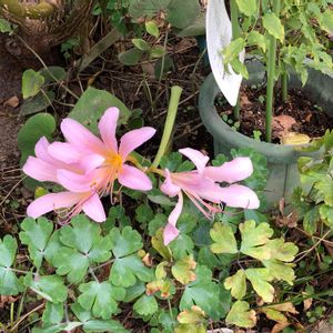 植えていた夏水仙のその上に 今年迎えたクレマチスを置いてしまい😱 間からやっと出て くの字の茎になってしまいました。😥 申し訳ない事をしてしまいました 😰 花が咲いて そういえばと思い出しました😅
