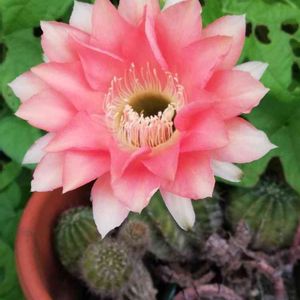 今朝の散歩中にサボテンの花が咲いていました。 何のサボテンかわかったら教えてくださいm(_ _)m もんもんチャン見守り隊参加させて下さいm(_ _)m