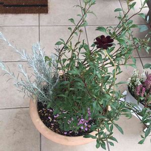 秋の寄せ植え チョコレートコスモス ビオラ