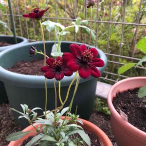 おはようございます☀ チョコレートコスモスさん🍫 咲きはじめました❣️ 暴れまくって咲いています🎶🎶