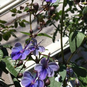 🦋クレロデンドルム・ブルーウィング 夏より秋の方がきれいな色で咲いています💙 3年程前に寄せ植えで使った3.5号程の小さな苗が、今では7号鉢いっぱいに広がり、もう倒れそうです💦 外管理で冬越しに失敗して、蕾が出来なかった年もありました。 剪定後は部屋で冬越しをしなくてはなりません。 みなさんもそうされてるのかな… 置き場所確保が悩みの種です😅🌀