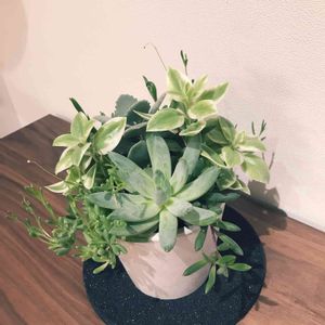 多肉寄植え^_^ 久々に水やりしたら凛とした感じがする!?センターの1番大きい子の名前わかる方教えて下さい!
