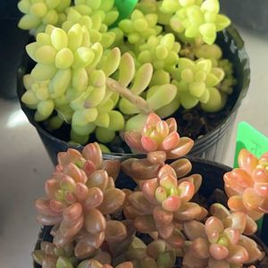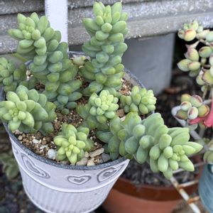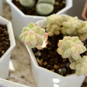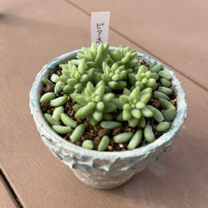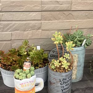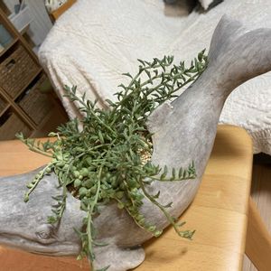 こんばんは☺ 連日身にこたえる暑さで大変ですが、皆さんいかがお過ごしでしょうか? ちょっと涼し気?なネックレス系の寄せ植え作ってみました🪴 Pic.1 鯨さんの鉢にドルフィンネックレスとエンゼルティアーズ Pic.2 ドルフィンさん元気良過ぎで溢れかえってます😆 エンゼルさんもがんばれ!笑 Pic.3,4 ぷっくら可愛らしい熊童子と不死鳥、ビアホップの寄せ植え 不死鳥さんなんだか増えてきそうな感じなので、隙間多めです🪴 Pic.5 モロキネンシス(多幸寿) 名前が素敵ですね☺ 葉の形も丸みを帯びた花のようです