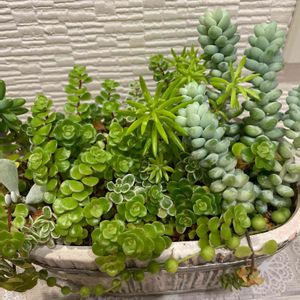 多肉さんご紹介32 寄せ植え2204 3月下旬に寄せ植えワークショップに 参加して作ったコ1ヶ月後。 反対側は次に投稿します! 全体的にボリュームアップ🆙 前回の写真では、ほとんど写ってなかった 茜の塔の成長っぷりが著しいです✨ 銀揃さん虹の玉さんの成長に 真ん中の花うららさんが埋もれてます💦 前回の写真は宜しかったら、 「MuuM寄せ植え」タグ🏷⸒⸒で ご覧くださーい🙌