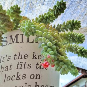 みらいチャンの🏷ネックレスの日 参加しまーす🎵 今日、ヌンムラリアさんの 初のお花、発見しました🥰 🏷ごっつご機嫌 ルビネさん、最近強風で ポロポロしちゃって巻き巻き😂 べビーズネックレスさんに モモンガさんの🏠ピック 斑入りグリネさん 右下のポットは切り離して2週間くらいかな 左下のポットも引っ張って抵抗あるので 近々✂️カットします 全部たらりんしたら50cmは行ってると思うの 前に測った時45cmあったし🎵 でも、✂️してもりもり増やします💪 今日は母の日ですね💓 前に息子に会った時催促してたけど 昨日LINEしたら忘れてたよ🤣 やっぱりなぁー⤵︎ ⤵︎ なので、薔薇のスタンプ飾ってみた😂 告知あるので、もう1postします ((。´・ω・)。´_ _))ペコリ