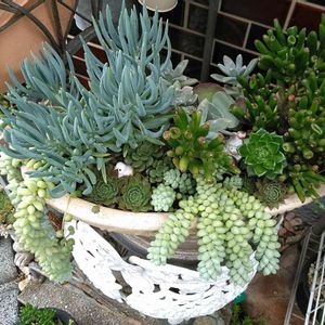 こんばんは⭐️ ビアホップだけ植えてあったのですがなんだかさみしいので寄せ植えしてみました✨ 多肉はまったくの初心者で出来上がりもイマイチ🌀ですが品種を忘れてしまうので記録もかねて🙏