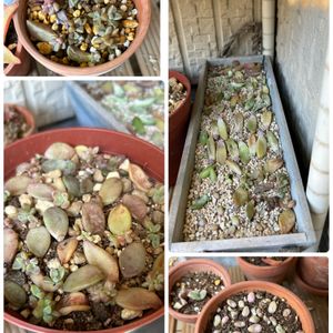 多肉の整理整頓😆 ブロンズ姫、葉っぱから沢山増えてくれました🎶 たぶんビアポップ、根が出るまでまだ時間かかりそう💦 ビアポップの後ろにいるのは、黄金月花。水を上げるときにいつも埋もれてしまいがち。でも何とか育ってます。 四角い箱は、色々な多肉ちゃんを並べてます。概ね、秀麗。