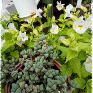 こんにちは〜(*ˊ˘ˋ*)。♪:*° 💛ムッチリぷくぷくの日 💛6日はカエルの日 優しい色の月美人さんと、オキナワスズメウリで 参加させて頂きま〜す💞 コポたんも、一緒に参加させて欲しい ケロ🐸 寒さが来ると、多肉さんもかわいい色になって来て、タニパトも楽しいですね❀.(*´▽`*)❀.