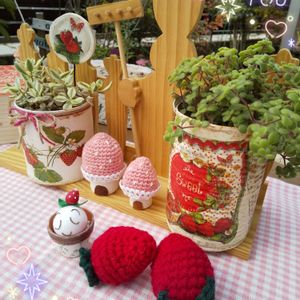 こんにちは〜🍓 ずいぶん朝夕涼しく感じるように、なりましたね🎶 秋めいて来ました〜✨ 🏷毎月15日はいちごの日🍓 参加しま〜す✨ 🍓リメ缶に植えた ♡ブロウメアナ ♡ボルケンシー錦 元気になって来てます🍓 ハピコロちゃんも、参加してくれました〜🍓 ✨✨✨✨✨