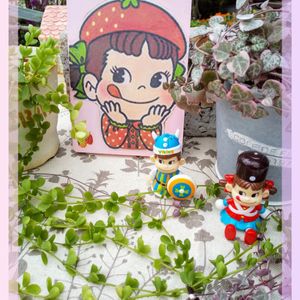 こんにちは〜✨✨ 🏷ペコちゃん祭り 参加しま〜す(^^) まだまだ暑いので、ペコちゃん フラダンス踊っちゃうそうですよ〜🏵🌼🌺 上手く踊れるかな? お花は家で咲いている 💛🧡ジニア です♡ 💚ライムジンガー 梅雨で徒長したので、カットして挿したから賑やかになりました♡ これは GS☆みなみさん→miki♡さん→我が家🏠へと繋がって来ました 大切にしたいです✨ 💚斑入りミセバヤは、半分しか斑入り出ませんでした〜💦 いろいろなペコちゃん 楽しませてね(*^^*)💓💓