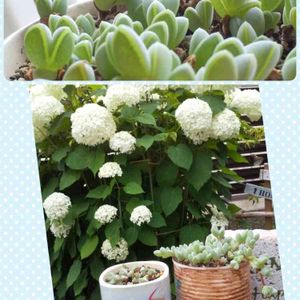 ✨外は暑いです〜(T_T)💦 アナベルのピンク🌸と白🌼 今年も咲いてくれました(^^) ピンク🌸は 昨年お迎えしたので、今年は花数も多くてすごくカワイイです(^^) 白のアナベルは、地植えなので顔くらい大きいのありますよ(*^^*)💞