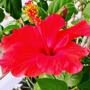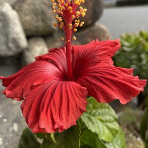 ブッソウゲ(扶桑花、仏桑華)🌺 アオイ科フヨウ属の低木 (wikiより) 沖縄では赤花ともいう ハイビスカス🌺とも言うが、フヨウ属の学名・英名がHibiscusであることから、この名前は類似のフヨウ属植物を漠然と指すこともあって、複雑なアオイ科の園芸種群の総称ともなっている 私の居るここは沖縄ではない☺️