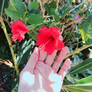 大きな大きなハイビスカス🌺 指を入れても伝わらないサイズ感。。