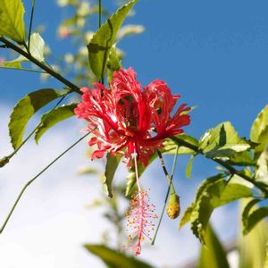 庭で見つけました。沖縄の方言でアカバナーといいます。真っ赤な花が沖縄らしいと思います。
