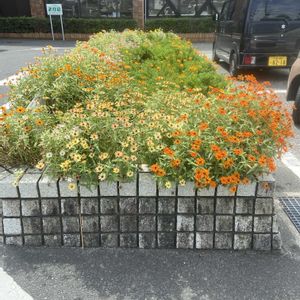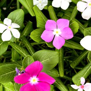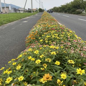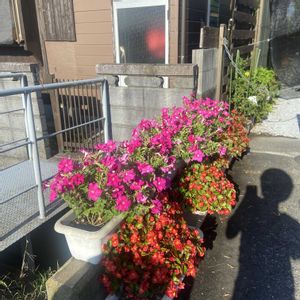 近くの外食店の入り口前花壇🌺🌸🌼 日々草が色とりどり… 咲いています♡♡♡ プレゼントの包装紙にしたいくらい🎁…